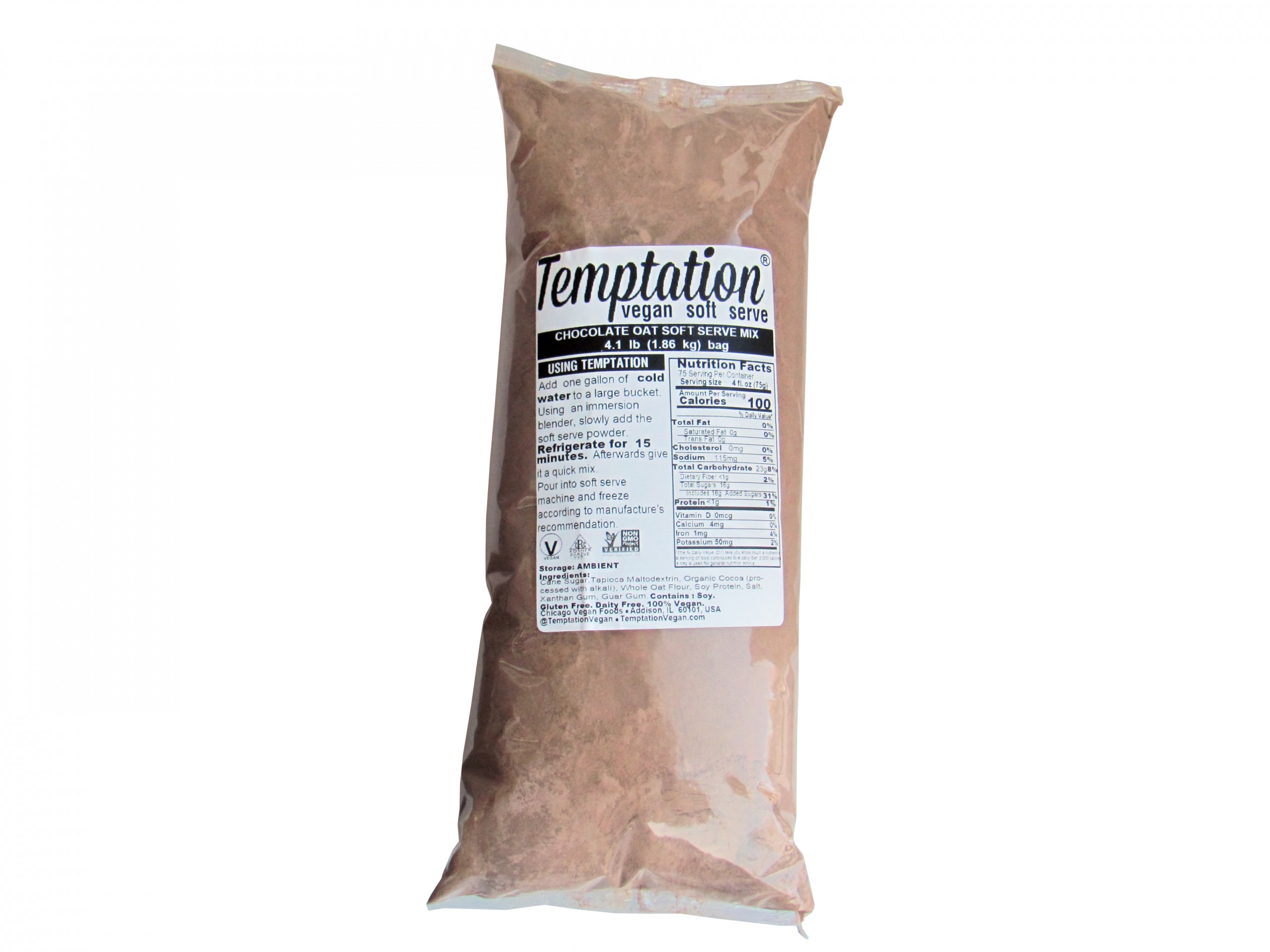 ICE CREAM MIX, SOFT SERVE CHOCOLATE VEGAN FAT-FREE GLUTEN-FREE SHELF STABLE OAT BASED – 6/4.1 LB