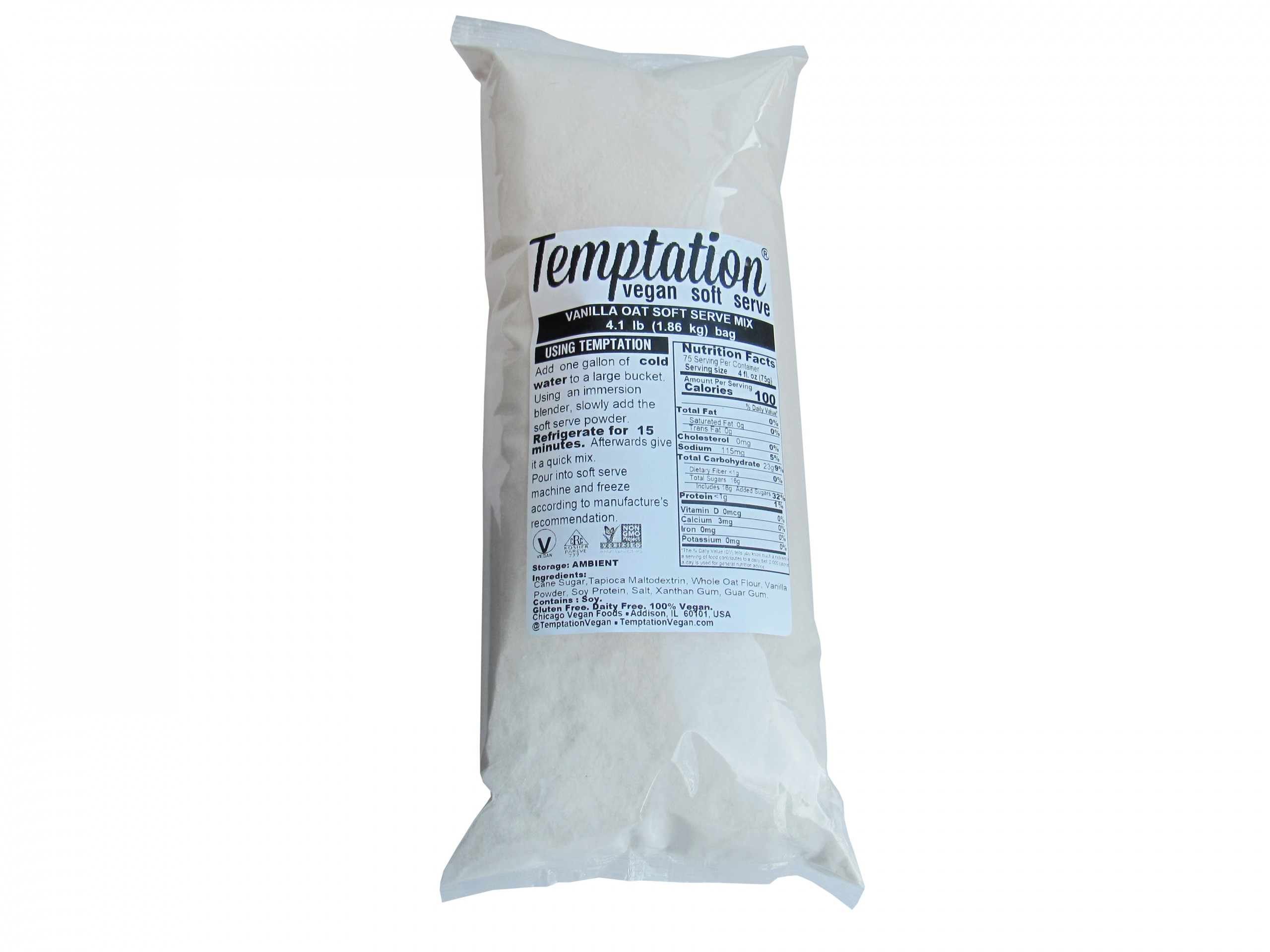 ICE CREAM MIX, SOFT SERVE VANILLA VEGAN FAT-FREE GLUTEN-FREE SHELF STABLE OAT BASED – 6/4.1 LB