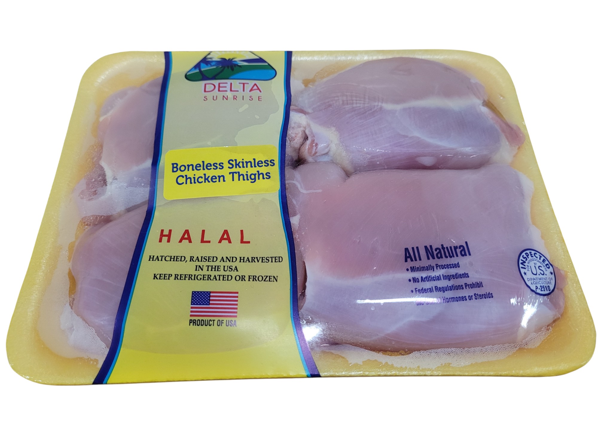 CHICKEN, THIGH BONELESS SKINLESS RANDOM RAW FROZEN RETAIL PACK – 12/2 LBA