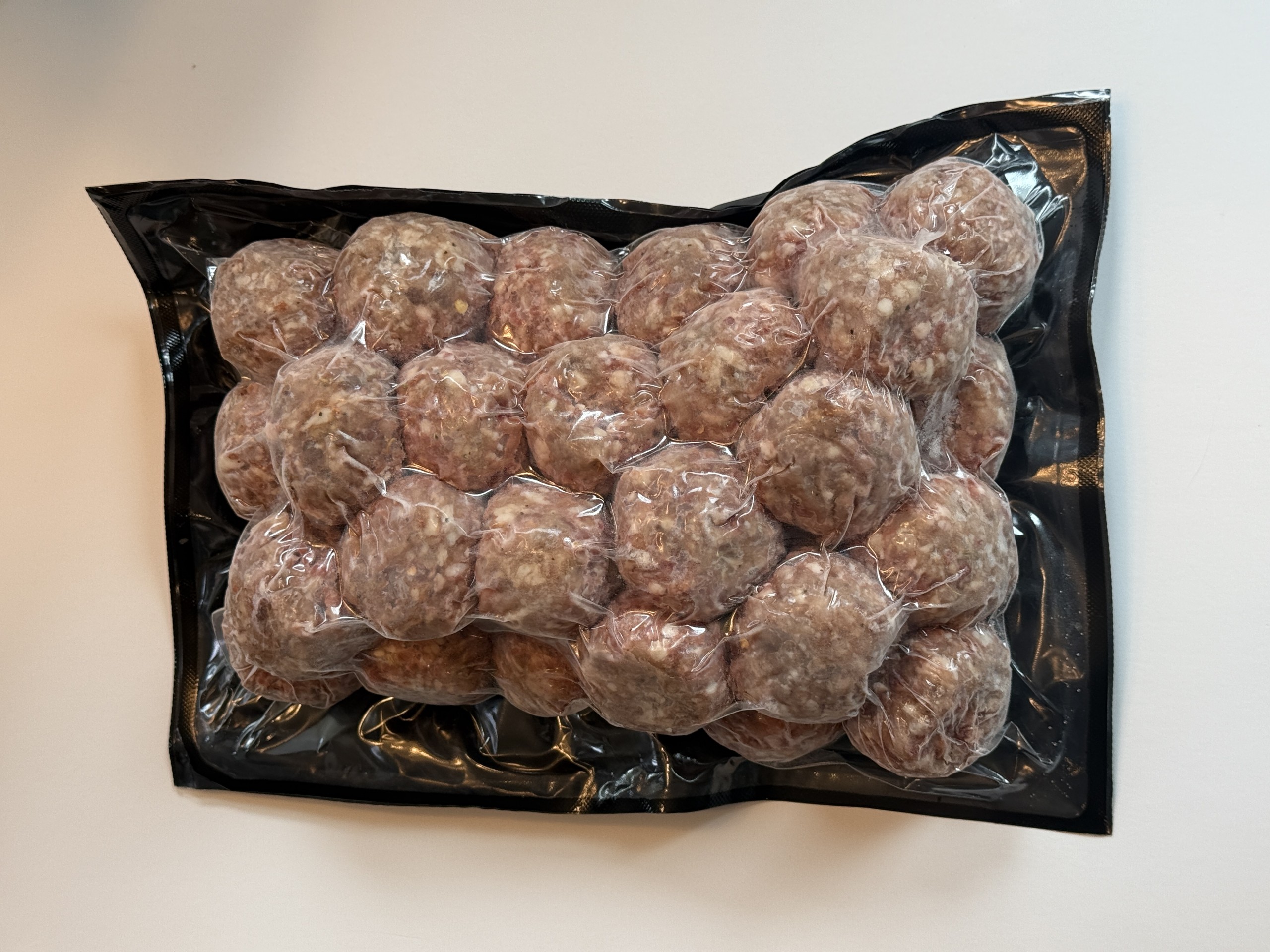 MEATBALL, PORK 1.5 OZ ITALIAN ANTIBIOTIC-FREE GLUTEN-FREE RAW FROZEN VACUUM-PACK – 106/1.5 OZ