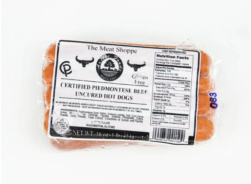 HOT DOG, ALL BEEF PIEDMONTESE 8:1 COOKED FROZEN – 12/1 LBA