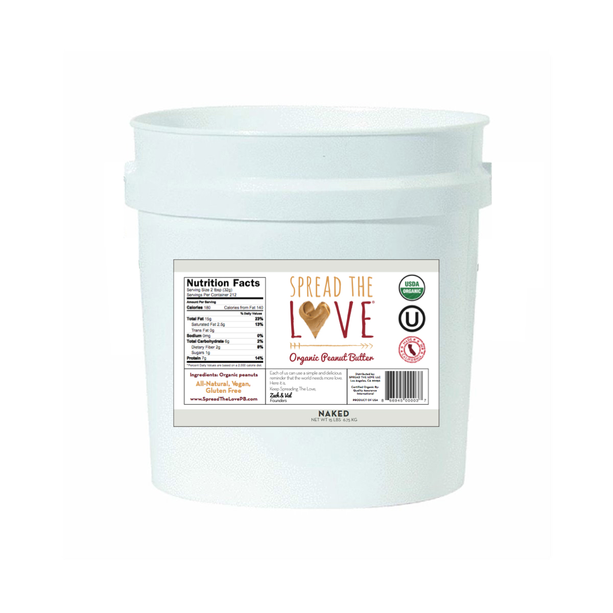 PEANUT BUTTER, CREAMY ORGANIC PAIL SHELF STABLE – 15 LB
