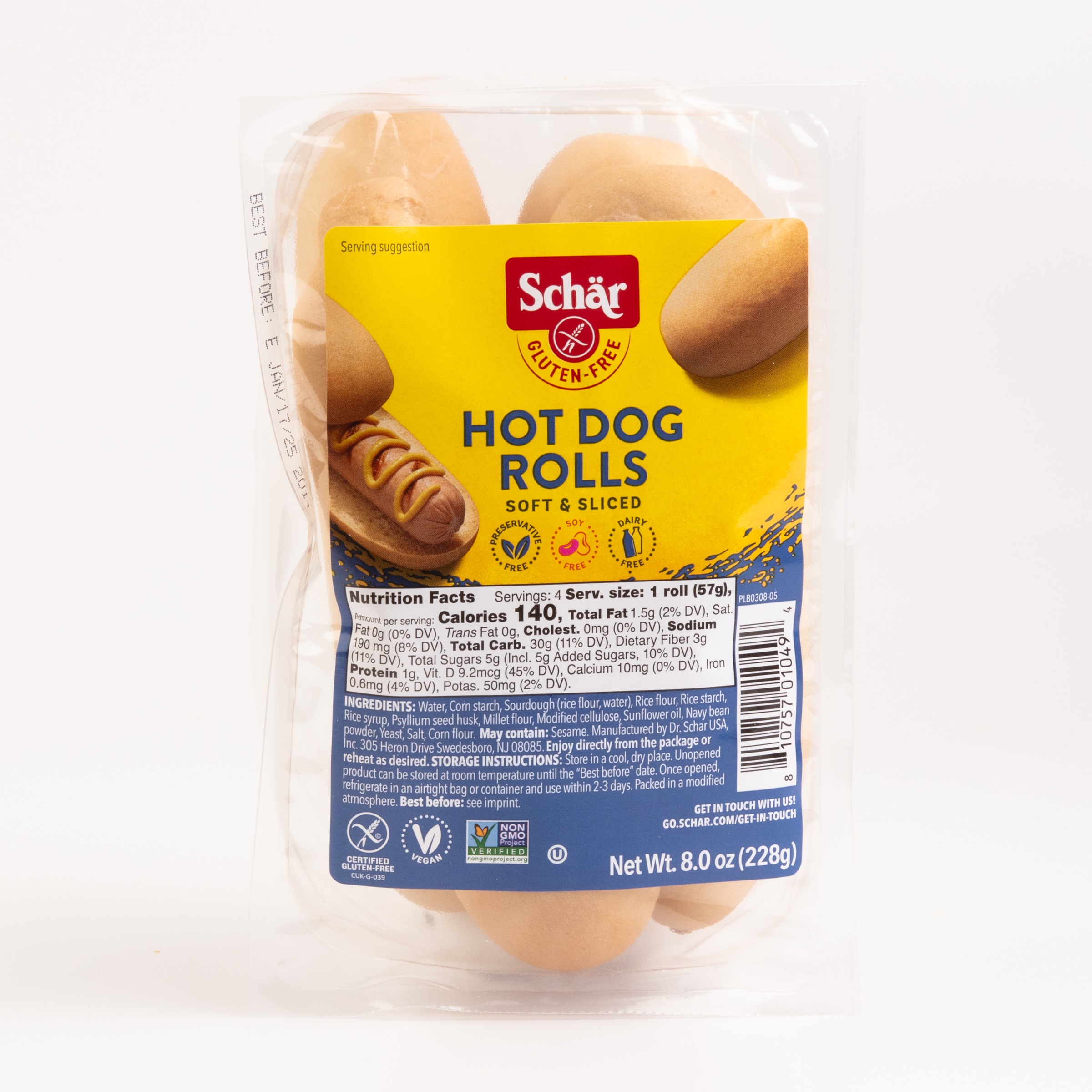 Delivers within 3-5 business days. Gluten-free rolls are ready for your next BBQ. These rolls are free of wheat, soy, egg, dairy, GMOs, and preservatives. They are also vegan and kosher.