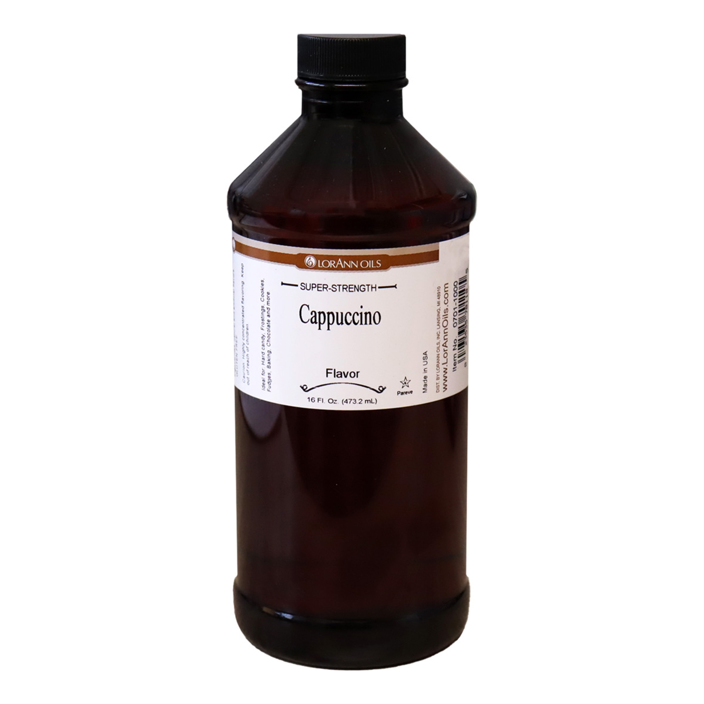 FLAVORING, CAPPUCCINO OIL LORANN GLASS BOTTLE SHELF STABLE – 16 OZ