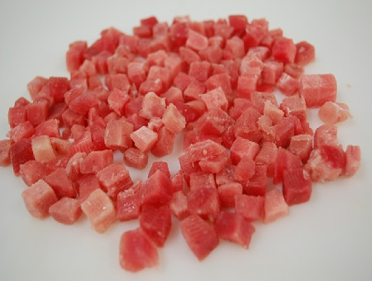 TUNA, YELLOWFIN .63″ CUBE BONELESS-SKINLESS RAW FROZEN-AT-SEA IMPORTED ECUA – 10/1 LB